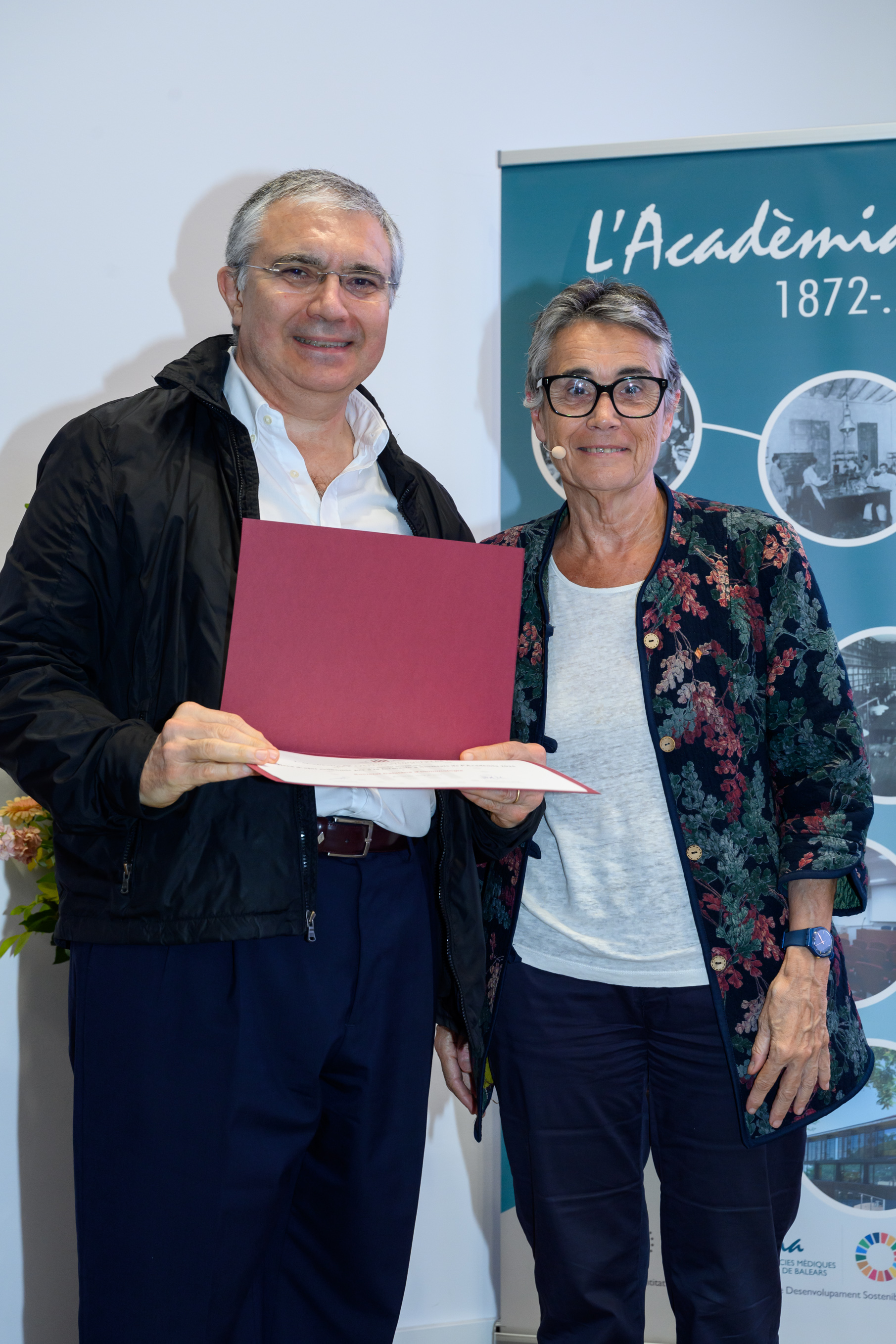 Lliura el Dr. Joan Bartra Tomàs, Vicepresident Tercer de l’Acadèmia i President del Tribunal i, el Dr. Josep M. Llobet Barbany, d’Assistència Sanitària