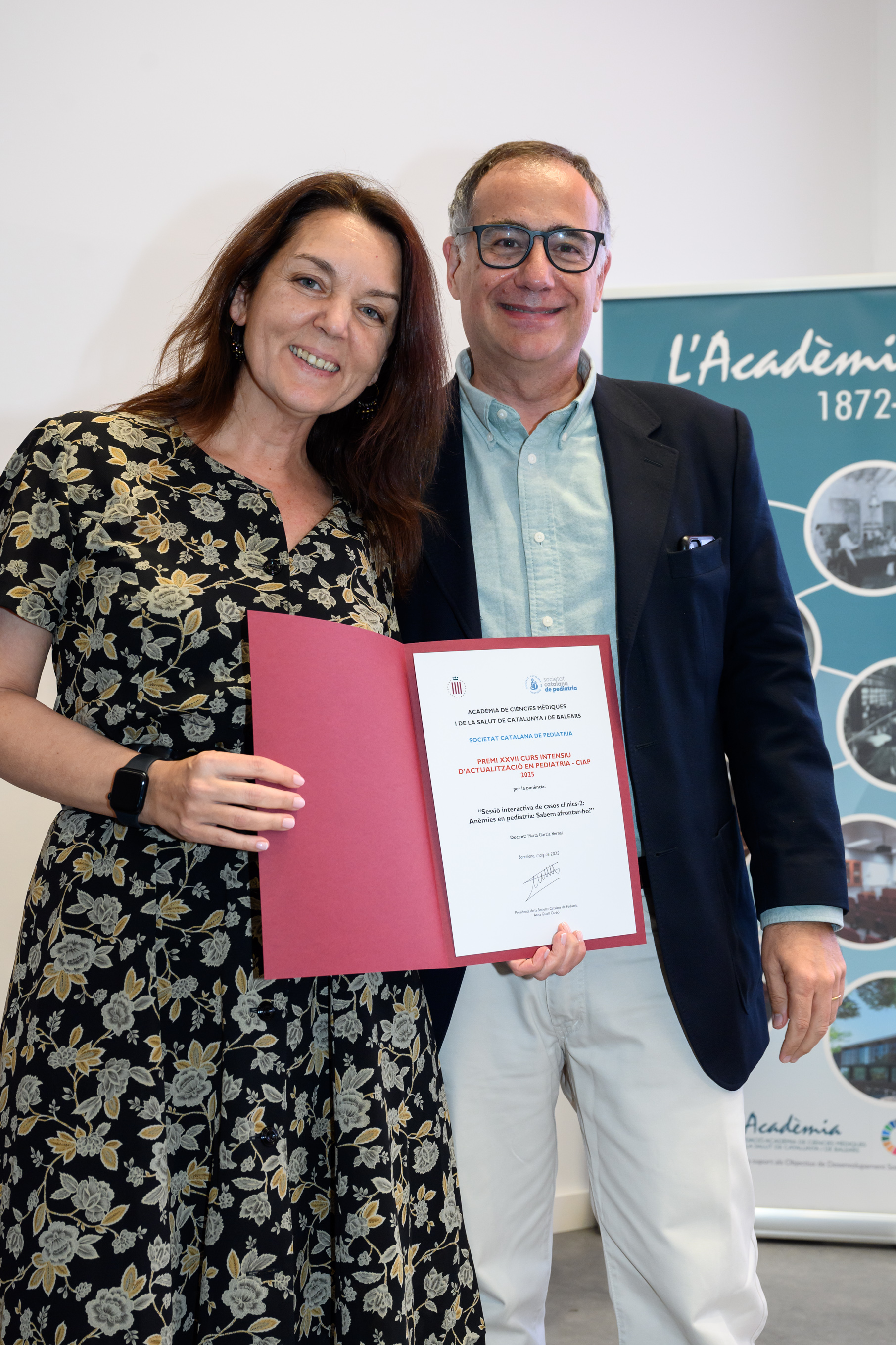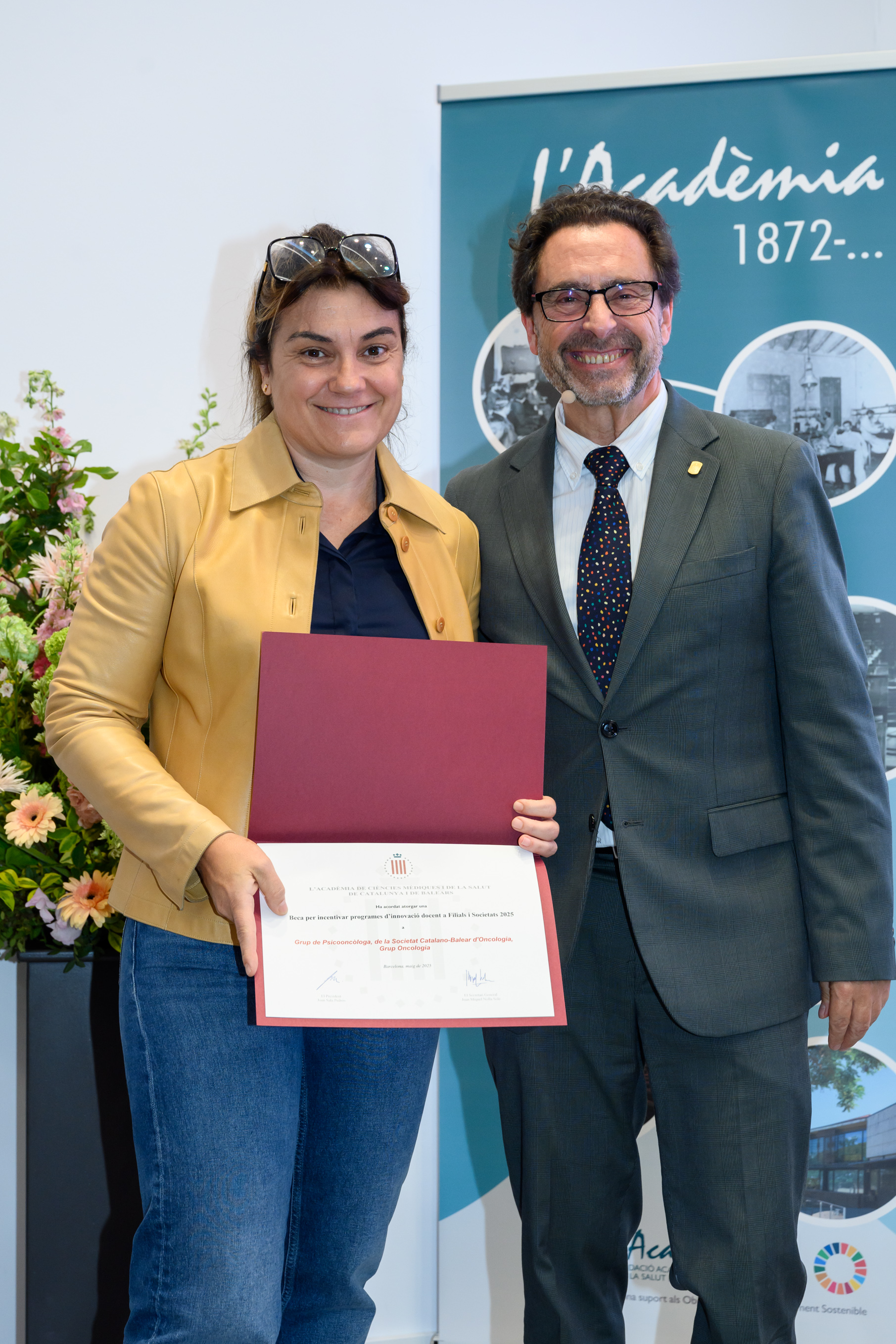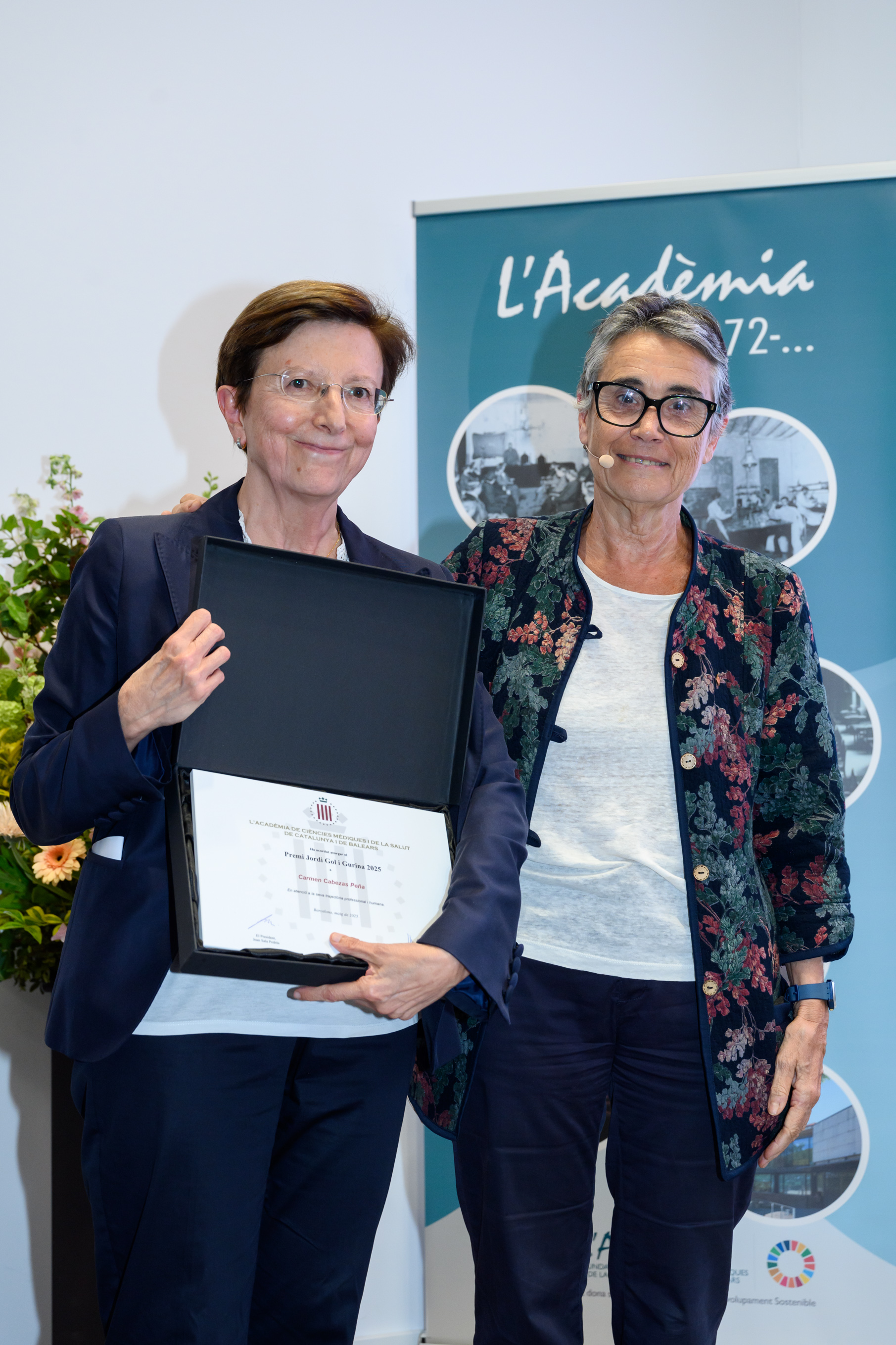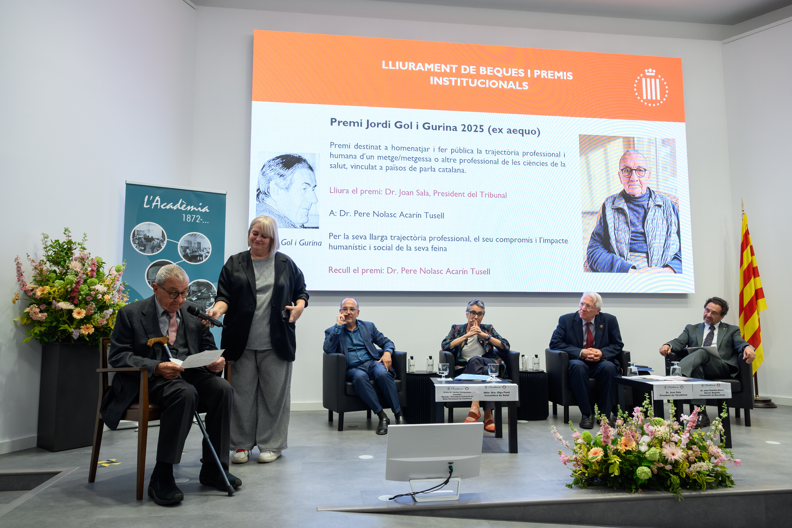 El Dr. Pere Nolasc Acarín Tusell i la Dra. Carmen Cabezas Peña, Premi Jordi Gol i Gurina 2025 (ex aequo), van dirigir unes paraules als assistents i, un agraïment en nom dels guardonats